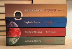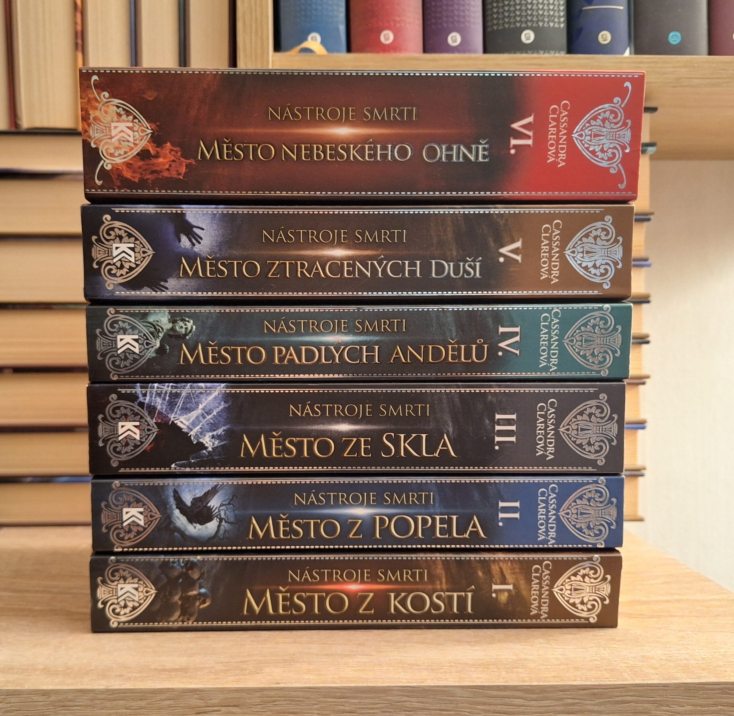Ale nakonec to přeci jen nebyly všechny nové přírůstky. Sestřenice totiž po Vánocích třídila svou knihovnu a nabídla pár knížek, z nichž jsem se rozhodl, že se ujmu následujících tří kupiček. Prní z nich představuje celá série Stmívání v prvním brožovaném vydání od nakladatelství Egmont. Druhá kupička je série Nástroje smrti od Cassandry Clare ve vydání od Knižního klubu v jednotném designu.