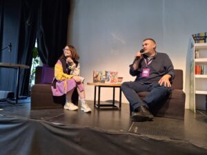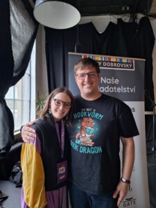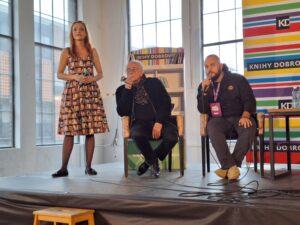 Já si z letošních hostů vybral ilustrátorku Adélu Stopku, Annu a Jiřího Kouřilovy, Kryštofa a Václava Knopa a také Terezu Olbrichtovou a Barboru Salátovou. Mimo tyto hosty, na jejichž besedy jsem se ve svém časovém plánu dostal, jsem se viděl i s Danem Krejčíkem a také samozřejmě s hlavními organizátorskými tvářemi od Dobrovského – Adamem Pýchou a Kateřinou Valterovou. Ti se postarali o páteční warm up a i v sobotu byli k zastižení na celém festivalu, kde byli k ruce, kde bylo třeba, protože organizace takové velké akce je velice časově i personálně náročná.