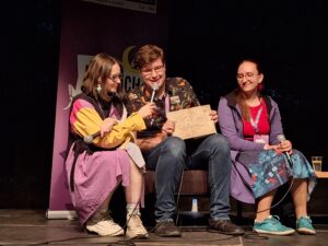 Prostory Papírny v Plzni na konci září sloužily jako místo, kde se konal letošní ročník Festivalu knižních závisláků. Než k němu ale v sobotu 26. září mohlo dojít, poprvé se v předvečer téhle velké akce konal festivalový warm-up, tedy společný večer, kde jsme se před festivalem rozehřáli a pobavili a naladili jsme se na festivalovou náladu. Nechyběl ani vědomostní kvíz o ceny. Kvízy byly vlastně dva – jeden obecný a jeden zaměřený na romantickou a erotickou literaturu. V tom všeobecném jsme společně s Míšou dokázali zvítězit, takže jsme dostali festivalovou tašku s knižními dárky i poukázkou do knihkupectví Dobrovský.