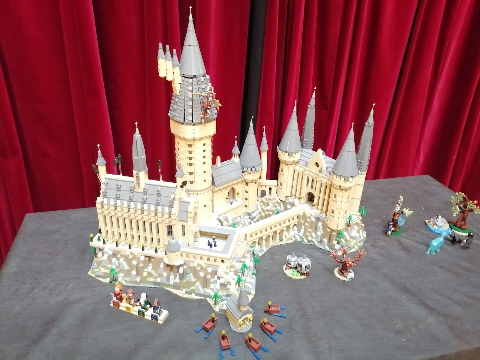 Nedaleko se také nacházel fotokoutek, kterého všichni hojně využívali. Pokud jste vyšli do patra, bylo na baru k dispozici drobné občerstvení ve stylu Harryho Pottera, ale také skvělá italská káva Ravasio zdarma nebo snídaně a svačiny od MixIt a také chutný Chai Latte. Nechyběl ani workshopový koutek, kde jste si mohli sestavit něco z Lega a zapojit se do soutěže nebo si pro sebe či své blízké vyrobit kolejní vánoční ozdobu, přáníčko, záložku do knížky nebo ministerský oběžník. Vynechal jsem ve svém popisu vstupní prostor po příchodu do prvního patra. U výdeje vstupenek a plátěných tašek pro držitele vstupenek srpec a galeon se nacházela také šatna a známý levitující dort (Nezapomněli jste kouzlo Wingardium Leviosa?) nebo místo pro odevzdávání soutěžních básniček či cosplay fotografií anebo také výstavka krásných plyšáků, kterou můžete vidět na úvodní fotografii i na dalších záběrech.