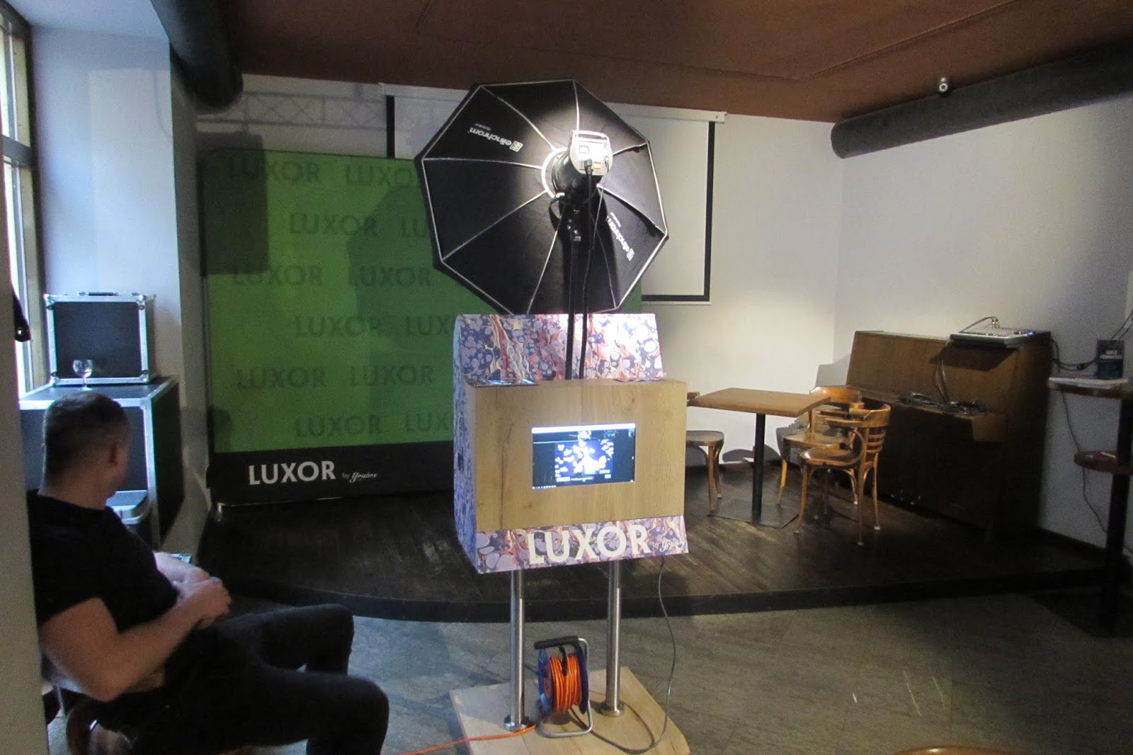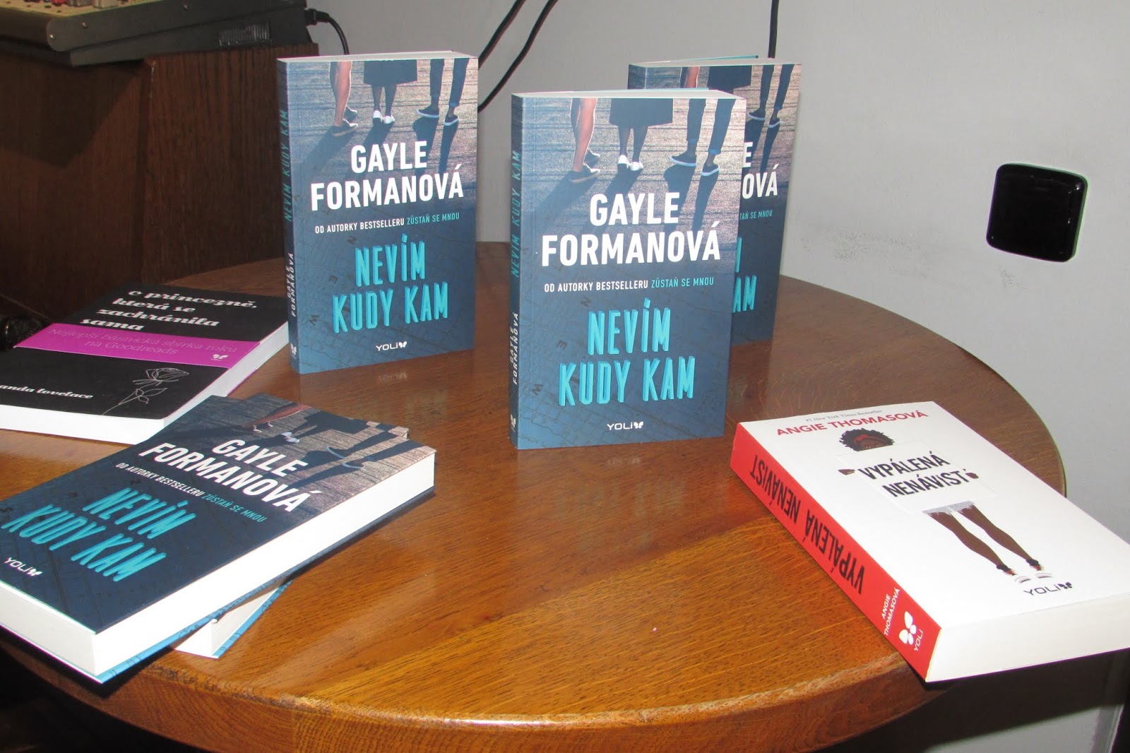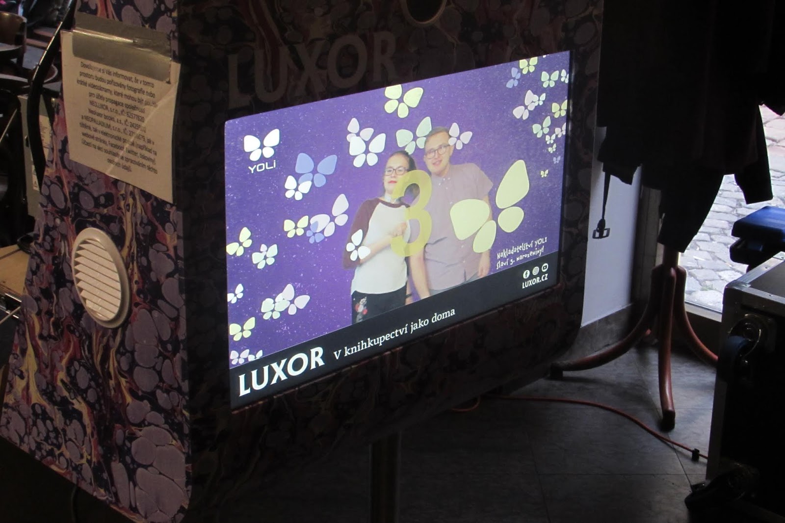 Poté jsme se již usadili, začali diskutovat o četní, o dárcích a dalších tématech. Když se salónek Café Kampus zaplnil příznivci nakladatelství YOLI, některými českými autory, které YOLI vydává a také spolupracujícími bloggery a bookstagrammery, začal Radek Blažek se svým proslovem. Celkem za pět let, co je YOLI na trhu, už vydalo toto nakladatelství přes 100 knížek a spoustu dalších se chystá na letošní rok. Radek taky oficiálně představil již zmíněné YOLI tašky a také speciální fotokoutek od Luxoru, ve kterém jsme se mohli nechat vyfotit a fotky byly hned k dispozici vytištěné, podobně, jako to dělá třeba Instagraf. Jenže narozdíl od něj, tady byly na fotkách šablony upravené přímo pro narozeninovou oslavu nakladatelství YOLI. Tohle byla ta věc, které před začátkem oslavy chyběly nožičky!